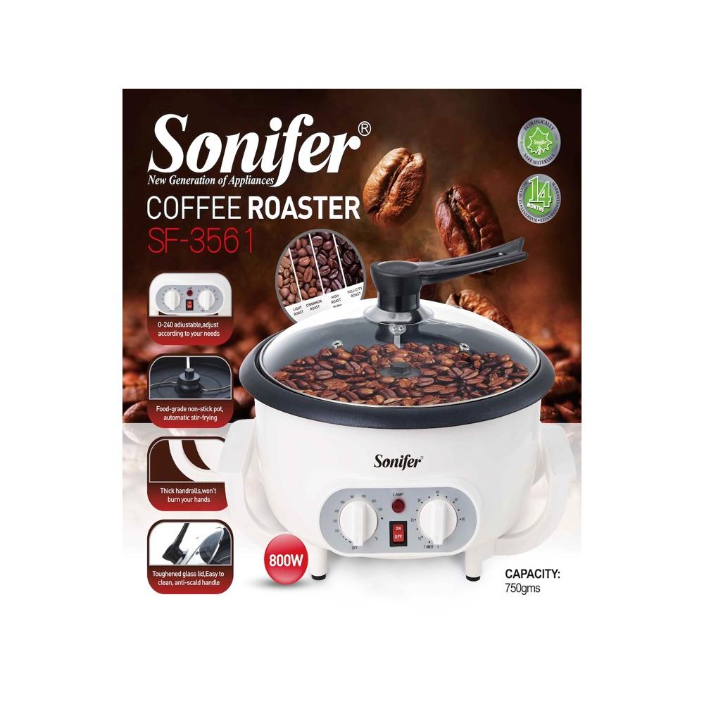 Արտադրող: Sonifer Մոդել: SF-3561 Հզորությունը: 800W Մուտքային հոսանք: 220V Բովում է 750 գրամ սուրճ միաժամանակ Հարիչը էլեկտրական է Չկպչուն ծածկույթ, հեշտ մաքրվող