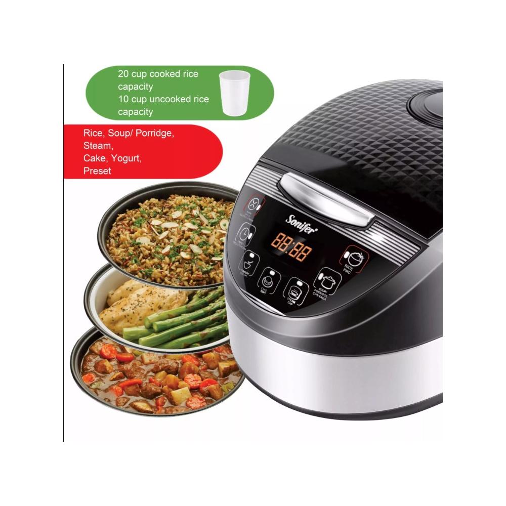 Արտադրող: Sonifer Մոդել: SF- 4003 Տարողություն: 5L Հզորություն: 900W Պատրաստման ռեժիմ։ Բրինձ, ապուր,շիլա, լոբի, տորթ, յոգուրտ․․․ Ժամկետների հսկողություն և ջերմության պահպանման գործառույթ, բաց/փակ կափարիչի անվտանգություն