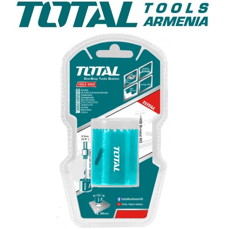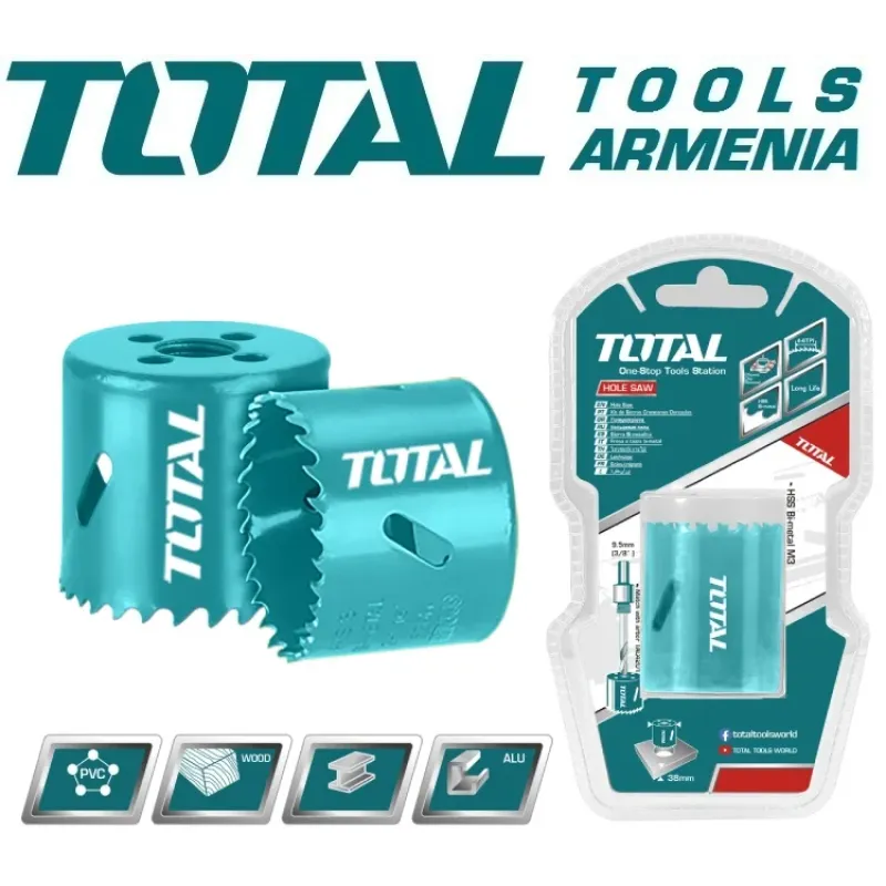 Երկմետաղական շրջանաձեւ սղոց TOTAL TAC410351- ը նախատեսված է ձեռքի շաղափների և գայլիկոնի հաստոցների համար : Այն օգտագործվում է փայտի, գունավոր մետաղների, չժանգոտվող պողպատի, պլաստիկի մեջ անցքեր հորատելու համար : Պատրաստված է բիմետաղից՝ 8% կոբալտի պարունակությամբ : Կողային անցքերը թույլ են տալիս հեշտությամբ հեռացնել սղոցված կտրված արտադրանքները և ապահովում են պսակի հովացումը :