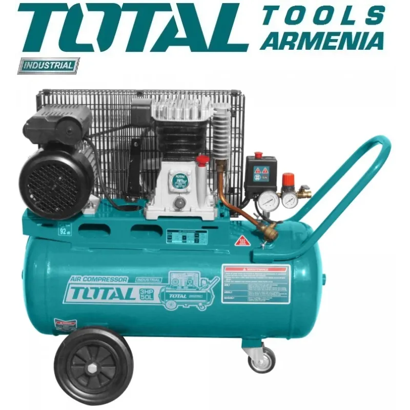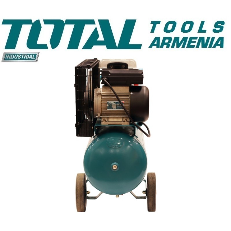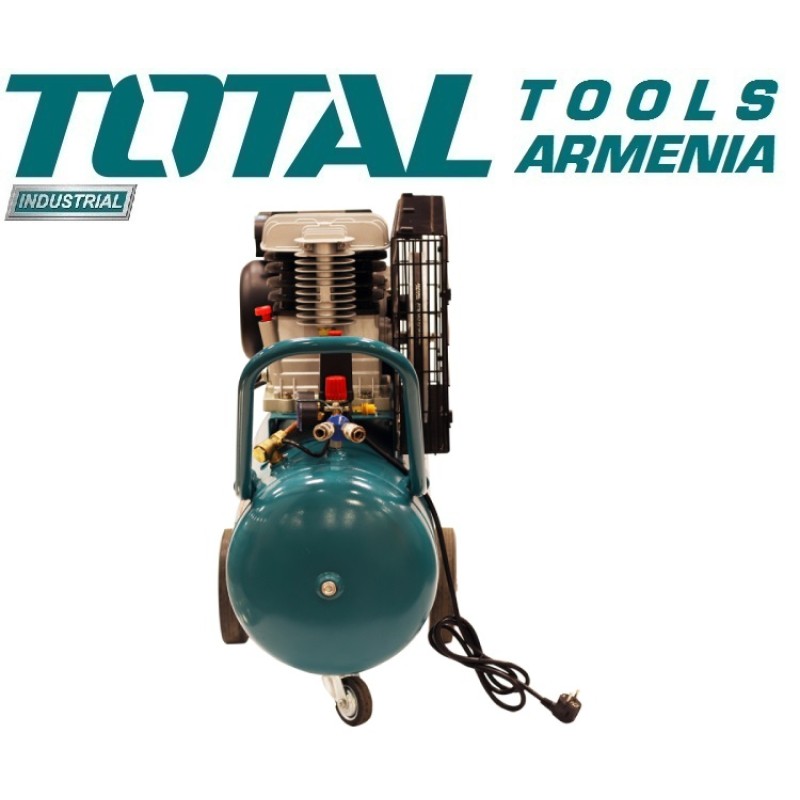 Օդի կոմպրեսոր TOTAL TC1300506- ը բարձր աշխատունակություն ունի էլեկտրական շարժիչի շնորհիվ : Ամուր պատյանը հարմար է օգտագործման ցանկացած պայմանների համար : Անիվների և տրանսպորտային բռնակի առկայությունն ապահովում է շարժունակությունը , որը հարմար է խոշոր շինհրապարակների կամ արդյունաբերական տարածքների համար : Ներկառուցված ճնշման չափիչը հեշտացնում է օդի սեղմման գործակիցը և նվազեցնում միացված գործիքի կոտրման հավանականությունը :