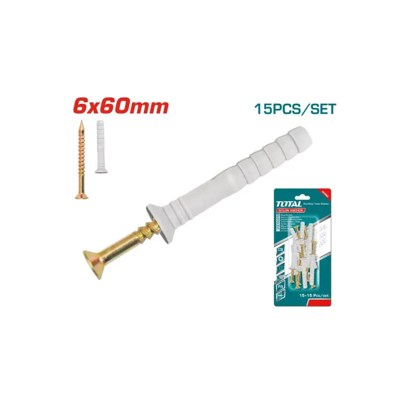 Պտուտակների հավաքածու ՝ նեյլոնե ամրակներով 15 հատ TOTAL WJNAK3507012