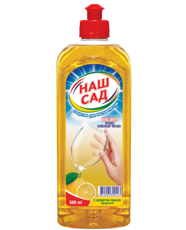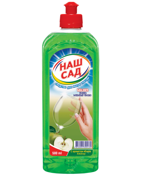 «Наш Сад » ապրանքանիշի նարնջի,կիտրոնի և խնձորի բույրով հեղուկը հեշտությամբ լվանում է սպասքը, հեռացնում է յուղն անգամ սառը ջրով լվանալու դեպքում՝ պահպանելով ձեռքի մաշկի փափկությունը։