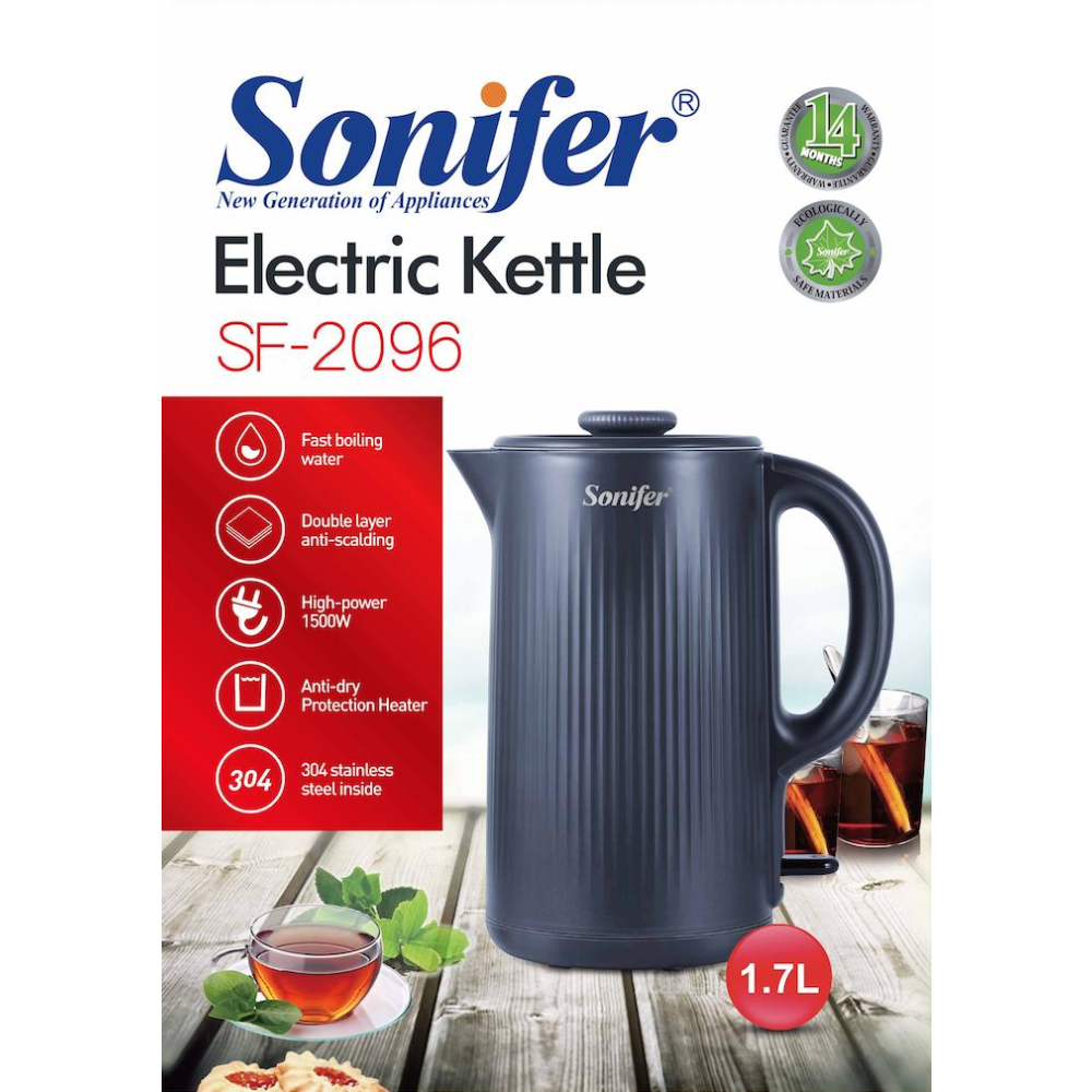 Արտադրող: Sonifer Մոդել: SF-2096 Ծավալը: 1,7L Պատրաստված է չժանգոոտվող մետաղից Հզորությունը: 1500W Մուտքային հոսանք: 220V Ավտոմատ անջատիչ: Այո