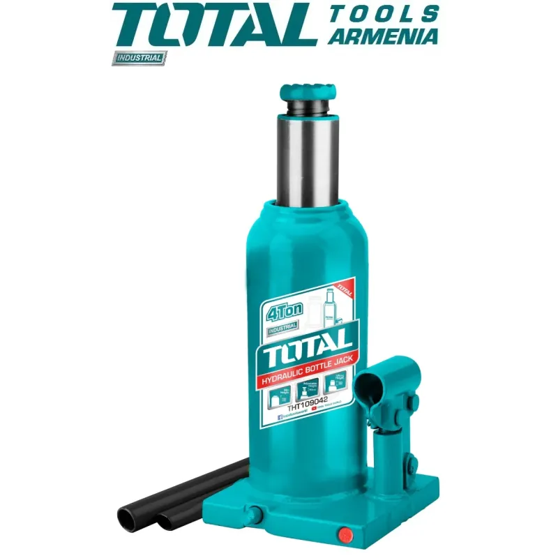 TOTAL THT109042 4տ - հիդրավլիկ դոմկրատը թեթև է , և հարմար ամբարձիչ աշխատանքների համար : Ամուր մետաղական պատյանը երկար ժամանակ դիմակայում է հիդրավլիկ հեղուկի ճնշմանը : Գոյություն ունի անվտանգության փական ` գերբեռնվածությունից պաշտպանելու համար :